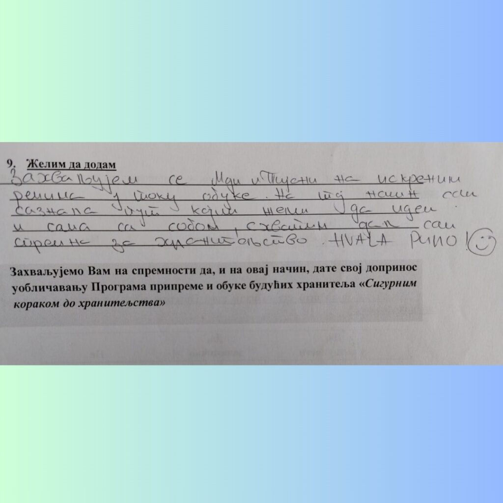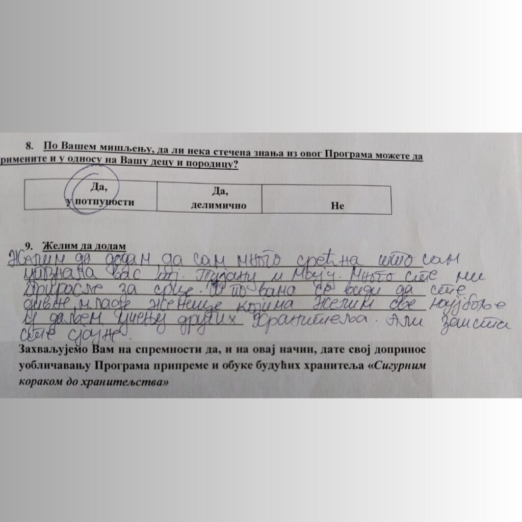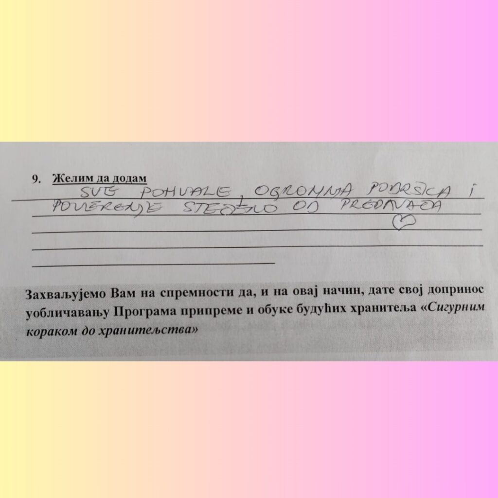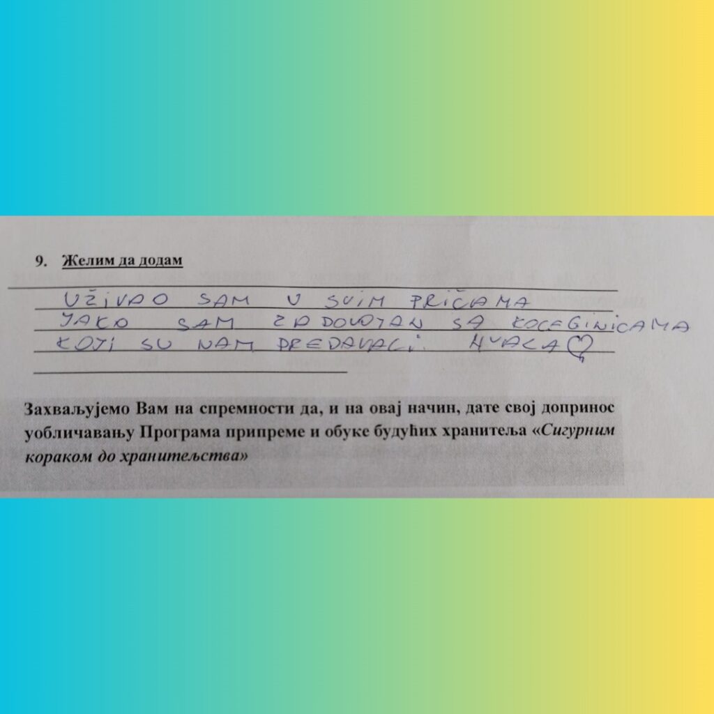 По завршетку обуке „Сигурним кораком до хранитељства“ за кандидате из општина Суботица и Мали Иђош, учесници су изразили задовољство сарадњом са стручним радницима Центра за породични смештај и усвојење Суботица. Неке од коментара смо поделили са вама.